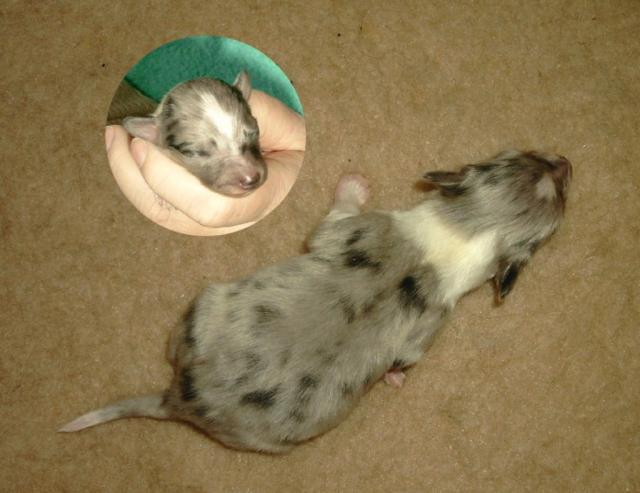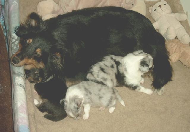 am 05.04.2006 fielen   1 / 1    blue merle und   1 / 0   tricolour Welpen